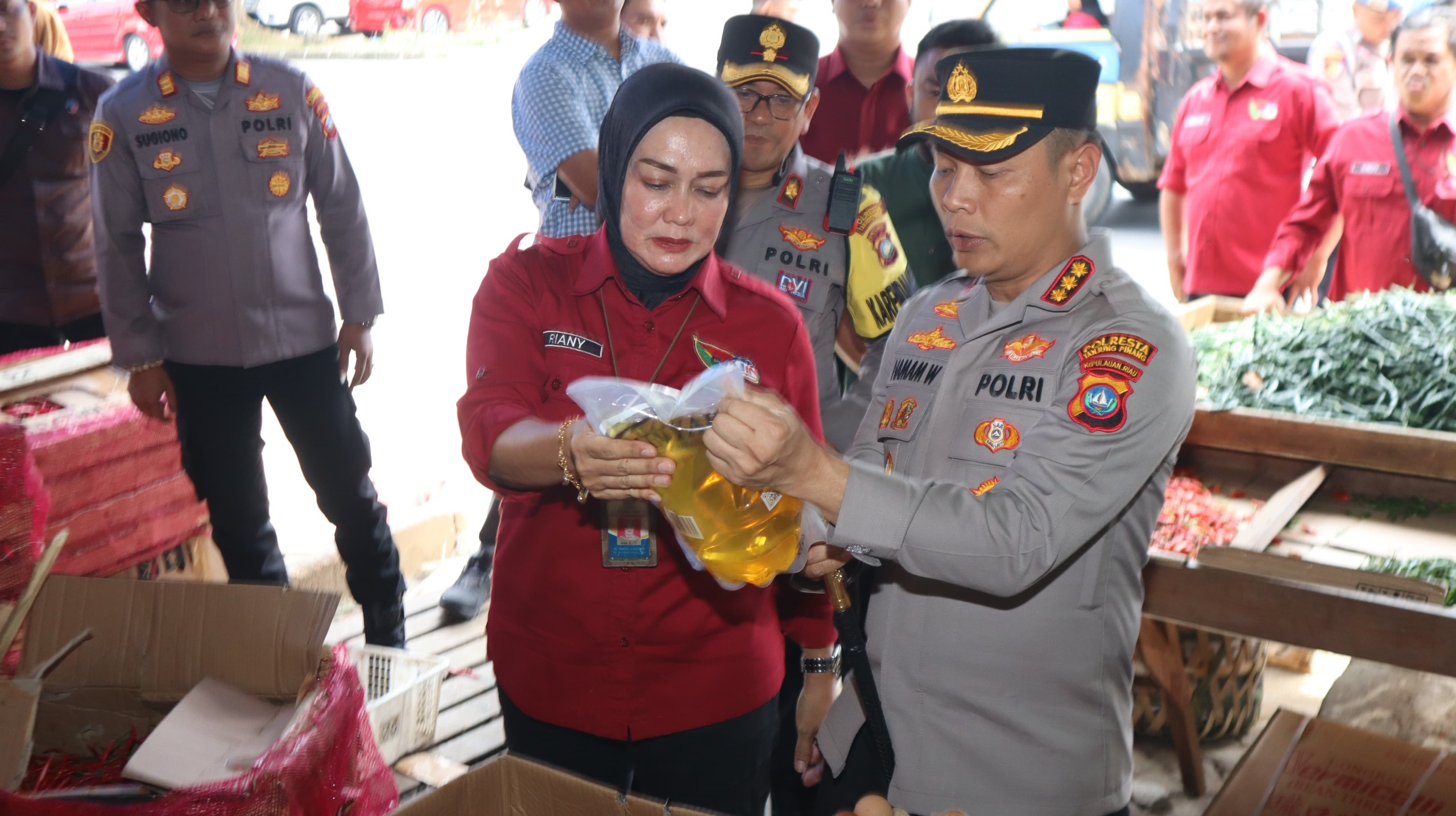 Kapolresta Tanjungpinang Kombes Pol Hamam Wahyudi, S.H., S.I.K., M.H mengatakan, pihaknya turut serta dalam pengecekan ketersediaan bahan pokok bersama Disperindag dan Bulog Tanjungpinang.