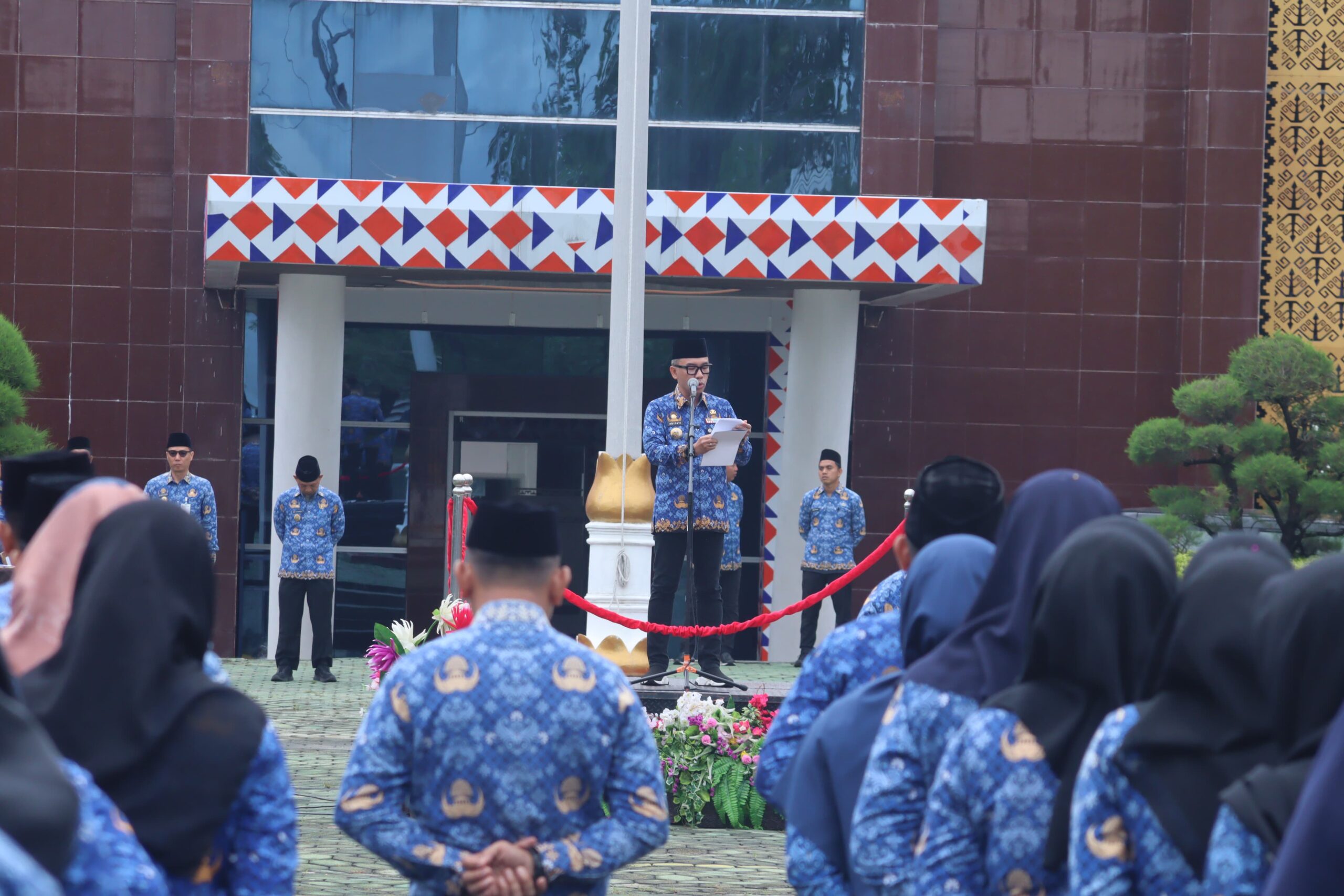 Upacara dihadiri oleh Sekretaris Daerah Kabupaten, Saipul, S.Sos.,M.IP, para Pejabat Esselon II, III dan IV serta Staf Pemerintah Kabupaten Way Kanan. (Rido)