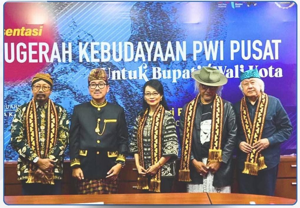 Jakarta, (HD) – Bupati Lampung Utara, Dr. Ir. Hamartoni Ahadis, M.Si., memaparkan kekayaan budaya daerah berupa kesenian tradisional Cangget Bakha pada ajang Anugerah Kebudayaan Persatuan Wartawan Indonesia (PWI) Pusat Tahun 2026, yang digelar di Hall Gedung Dewan Pers, Jakarta, Jumat (9/1/2026).