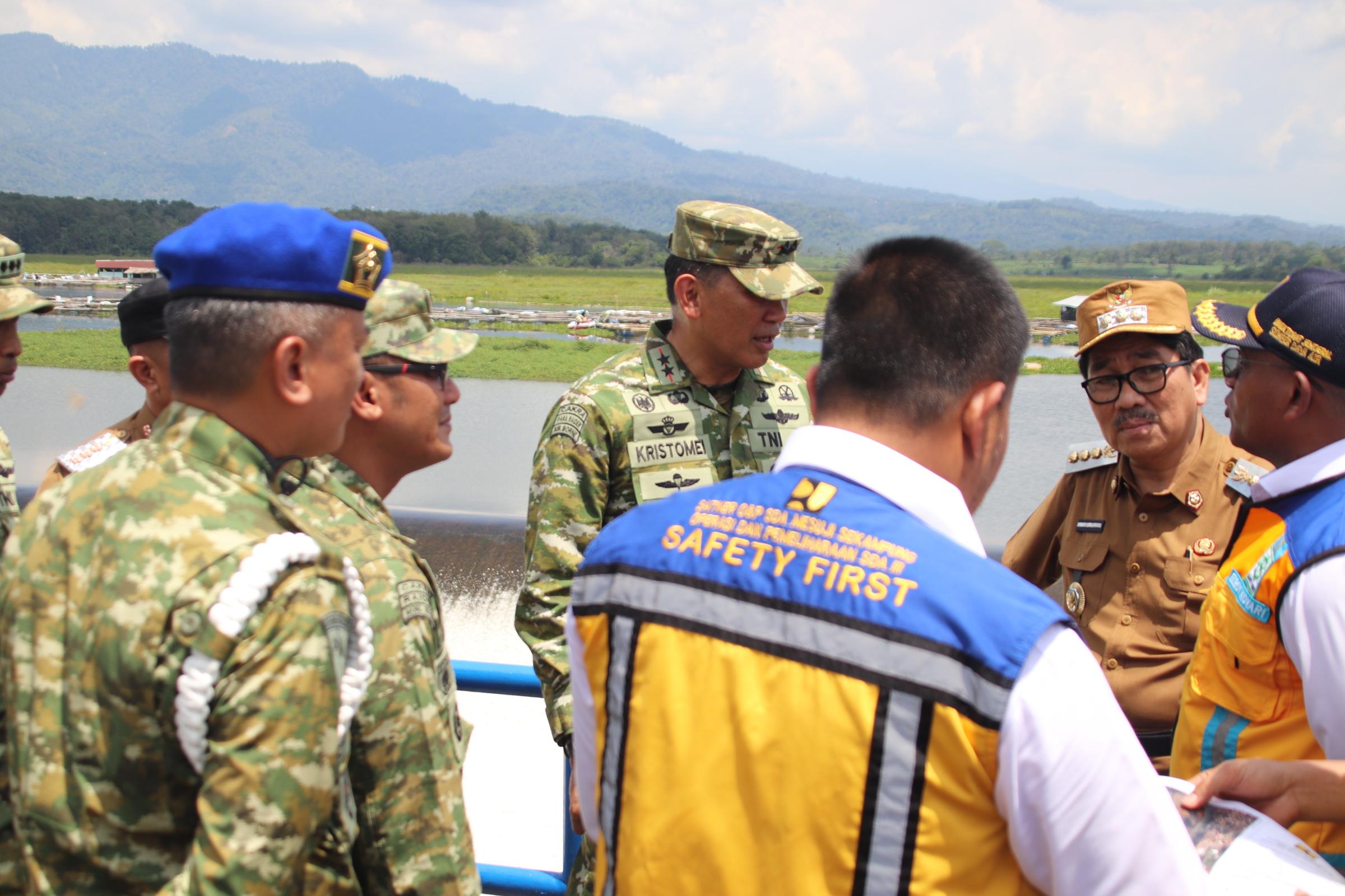 Pangdam menegaskan komitmen bersama agar seluruh instansi tidak bekerja sendiri-sendiri demi memastikan distribusi air tepat sasaran bagi para petani. Pengarahan ditutup dengan peninjauan titik objek vital dan diskusi mengenai penataan Keramba Jaring Apung (KJA) dan Gulma yang menjadi penyebab degradasi kualitas air.