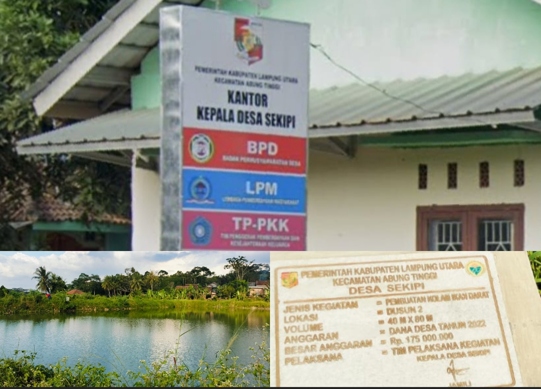 Namun sangat disayangkan masih ada oknum kepala desa yang menyalah gunakan penggunaan dana desa tersebut, seperti halnya terjadi di desa sekipi kecamatan abung tinggi kabupaten lampung utara diduga pengelolaan kolam ikan milik desa tahun anggaran 2022 tidak transparan dan dan diduga beraroma korupsi.