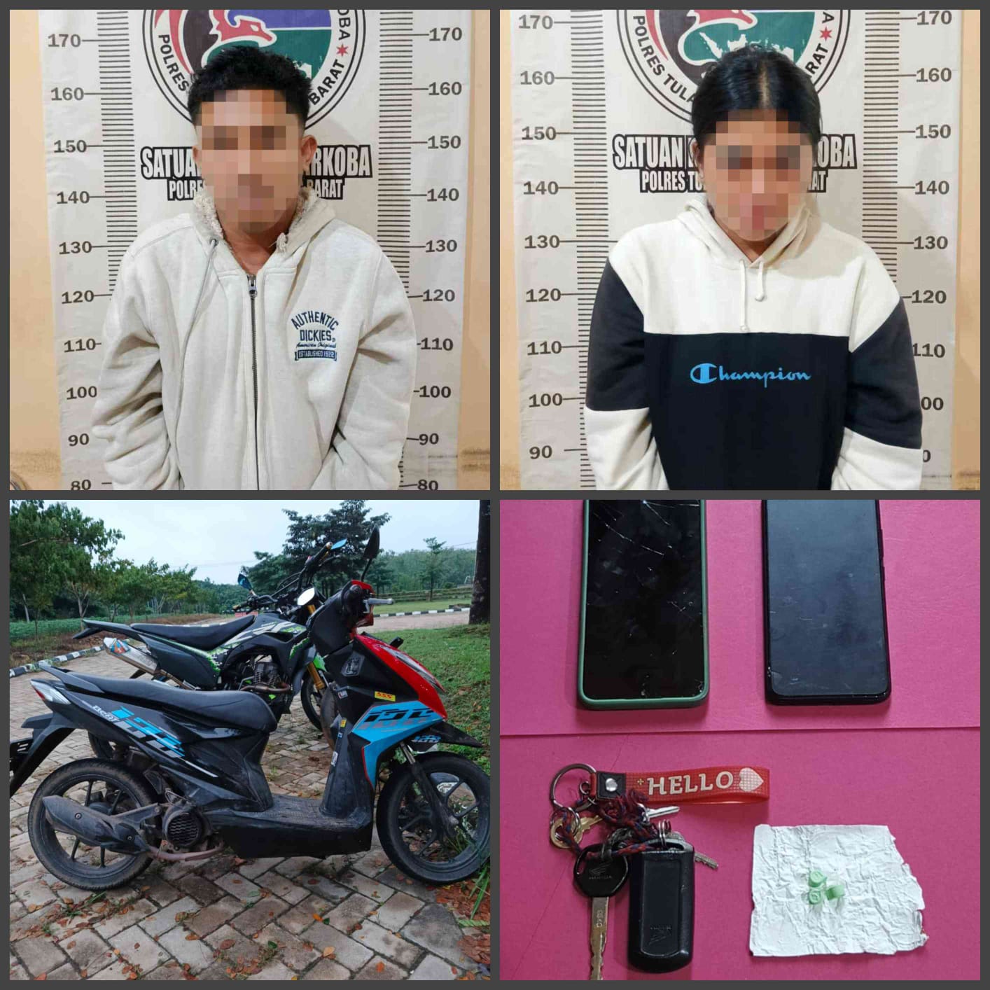 “Kedua tersangka tertangkap tangan memiliki barang yang diduga narkotika dan menyita barang bukti berupa : 3 (tiga) butir Pil Extacy warna hijau yang terbungkus kertas aluminium foil, 1 (satu) unit handphone merk Vivo 1902 warna biru, 1 (satu) unit handphone merk Oppo A15s warna biru, 1 (satu) unit sepeda motor merk Honda beat warna merah hitam tanpa nopol.Mereka diamankan beserta barang bukti untuk proses hukum lebih lanjut,” ujar Jepri