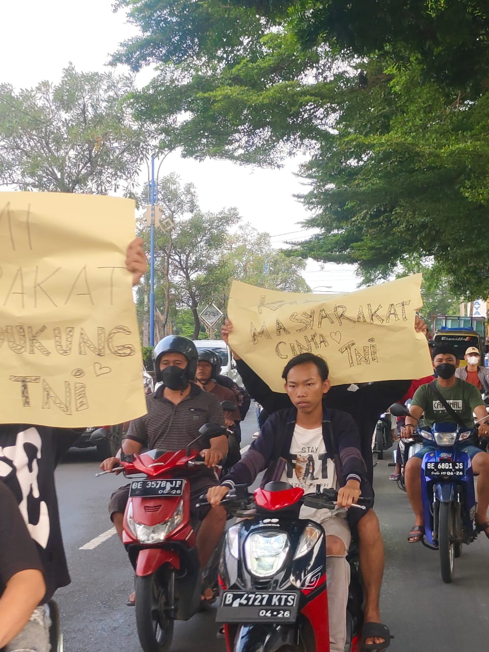 Lampung Utara, (HD) – Kepedulian terhadap Tentara Nasional Indonesia (TNI), ratusan Elemen masyarakat Lampung Utara berkeliling sambil membentangkan spanduk dukungan terhadap TNI.