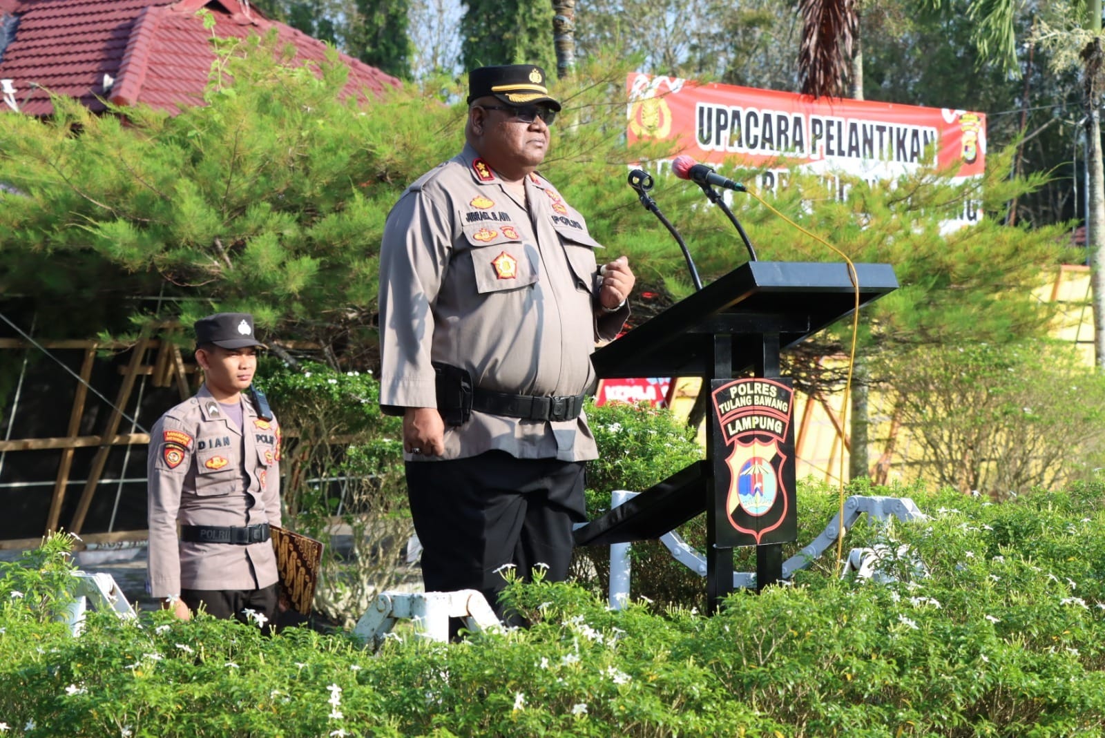 Upacara pelantikan ini dipimpin langsung oleh Kapolres Tulang Bawang, AKBP Jibrael Bata Awi, SIK, yang dihadiri oleh PJU Polres, Kapolsek Jajaran, personel Polres dan Polsek, serta Bhayangkari.