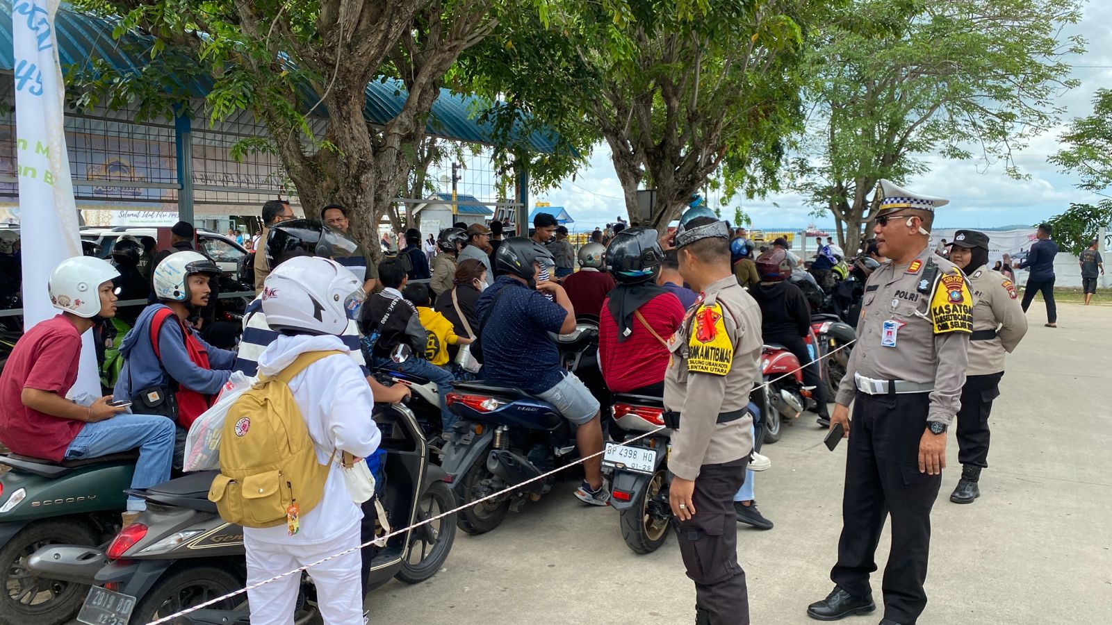 “Kami utamakan keamanan dan kenyamanan para pemudik yang akan kembali dan kami siagakan personel untuk pengaturannya, alhamdulillah sampai saat ini antrian masih batas normal dan kendaraan masih bisa ditampung di areal pelabuhan ASDP Tanjung Uban”, lanjut AKBP Riky Iswoyo, S.I.K., M.M.