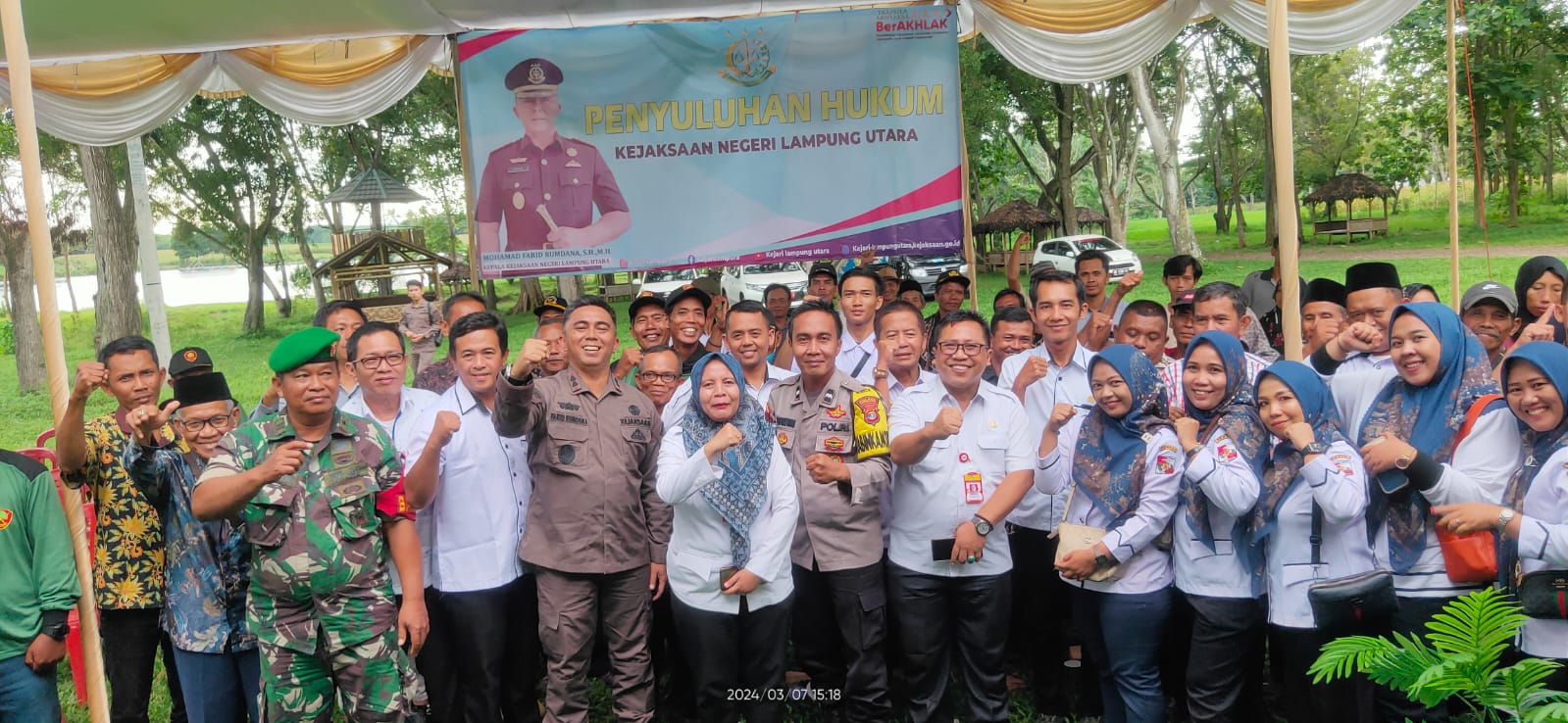 Kemudian kegiatan ditutup dengan foto bersama Kepala Kejaksaan Negeri Lampung Utara, Camat Blambangan Pagar serta para peserta penyuluhan hukum yang hadir.