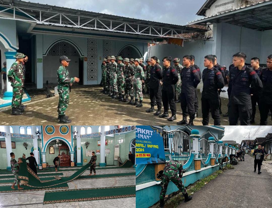 Karya bakti yang dipimpin langsung oleh Lettu Inf Eko Gondo Pranolo (Danki C Yonif 143/TWEJ dan Ipda Dedi Candiago (Danki C Pas Brimob) bersih – bersih di lingkungan dan dalam Masjid Al-Imam Kotabumi.