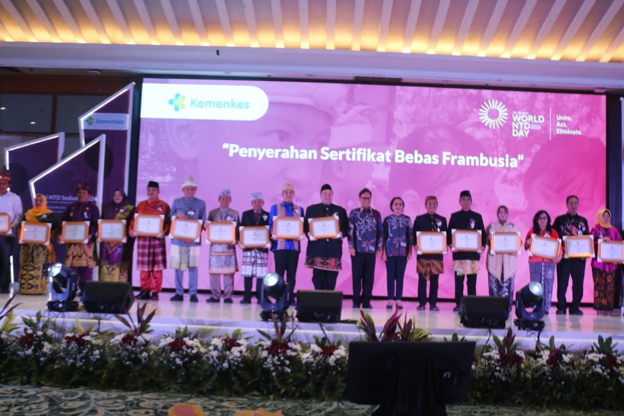 Penghargaan ini didampingi oleh Kadiskes Lampung Utara Maya Manan, Kadis Kominfo Gunaido Uthama. S. SIP. MH, Dr. Dian Mauli Kabid P2P Dinkes, karena Lampung Utara berhasil terbebas dari penyakit frambusia di Kabupaten Lampung Utara.