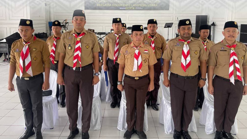 Lampung Utara, (HD) – Kepala Lapas Kotabumi, Sudirman Jaya beserta Anggota Pramuka Lembaga Pemasyarakatan (Lapas) Kelas IIA Kotabumi hari ini mengikuti kegiatan pembukaan Perkemahan Satya Dharma Bhakti Pemasyarakatan secara daring melalui aplikasi Zoom. Senin (23/6/2025)