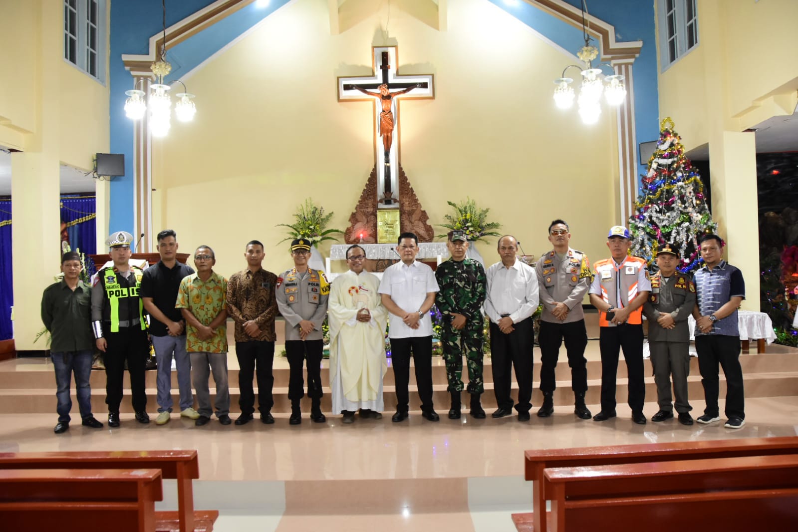 Penjabat (Pj) Bupati Tulangbawang Barat (Tubaba) Drs. M. Firsada, M.Si. bersama jajaran anggota Forkopimda dan pimpinan OPD setempat meninjau sejumlah Gereja menyambut Natal dan Tahun Baru (Nataru) di Kabupaten Tubaba. Minggu (24/12/2023) malam.