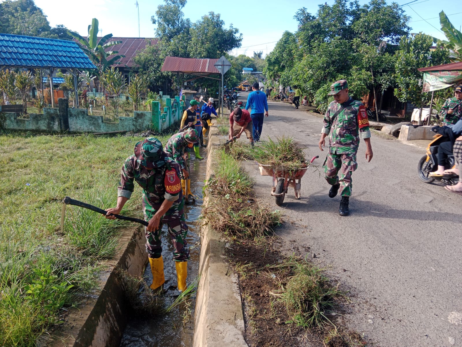 Seperti yang dilakukan oleh Koramil 1002-01/Batang Alai Selatan melaksanakan pembersihan parit dan lingkungan di Desa Cukan Lipai Kecamatan Batang Alai Selatan Kabupaten Hulu Sungai Tengah. Jum’at (26/04/2024).