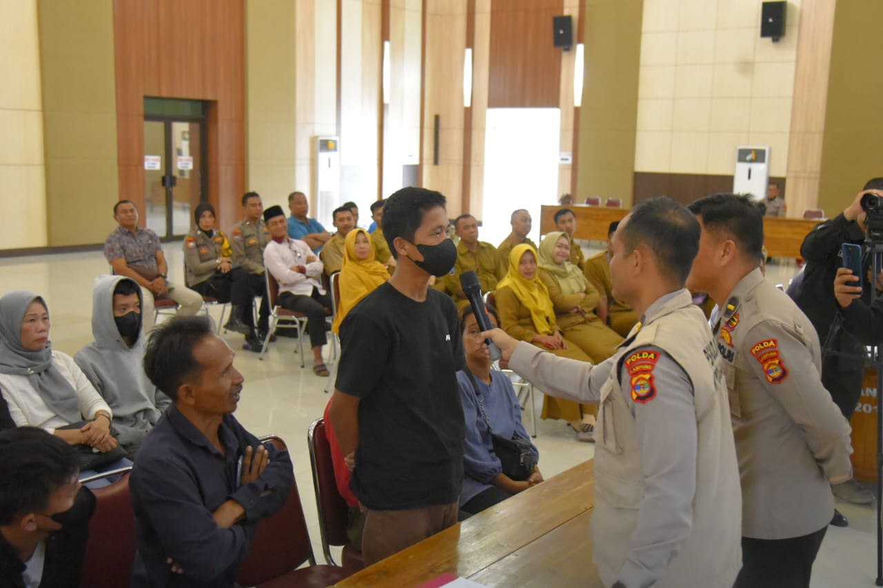 Remaja diduga pelaku tawuran yang di dampingi oleh orang tua masing-masing pelajar menghadiri giat tersebut, Direktur Pembina Masyarakat (Binmas) Kombes Pol Anang Triarsoni yang dalam hal ini diwakilkan Kasubditbintibsos AKBP M. Yamil memimpin jalannya kegiatan ini.