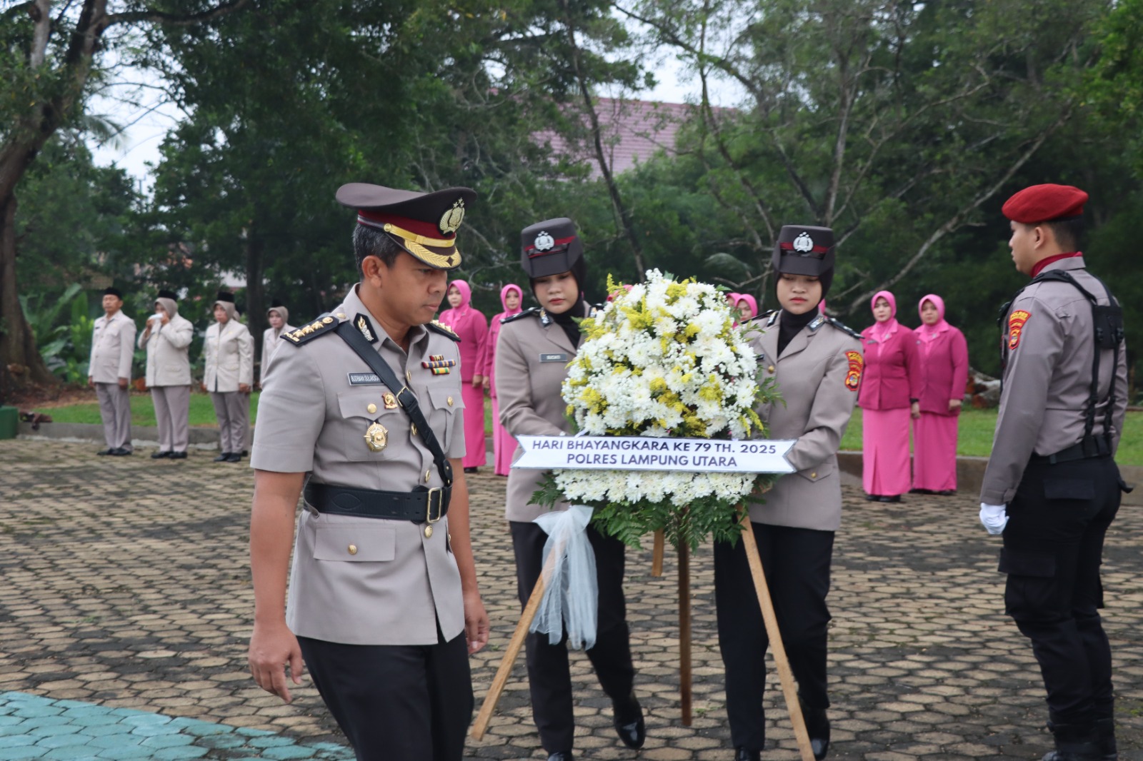 Ziarah dan tabur bunga ini dipimpin langsung oleh Plh. Kapolres Lampung Utara KBP Budiman Sulaksono,, S.I.K., M.M., CPHR diikuti Wakapolres, Kabag, Kasat, dan Kasi, Kapolsek Jajaran, perwakilan personil dan Polwan Polres Lampung Utara.