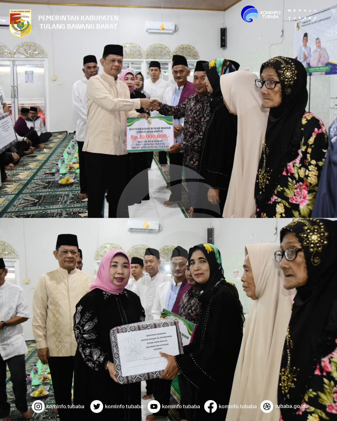 Seperti Dalam Kunjungan Safari Ramadhan terdahulu, Pj Bupati M. Firsada juga memberikan bantuan kepada Masjid Al-Muttaqin Tiyuh Gunung Terang dan Memberikan bingkisan Kepada Masyarakat Kecamatan Gunung Terang serta Ketua TP PKK memberikan bantuan Mukena perlengkapan Sholat Di masjid Setempat.