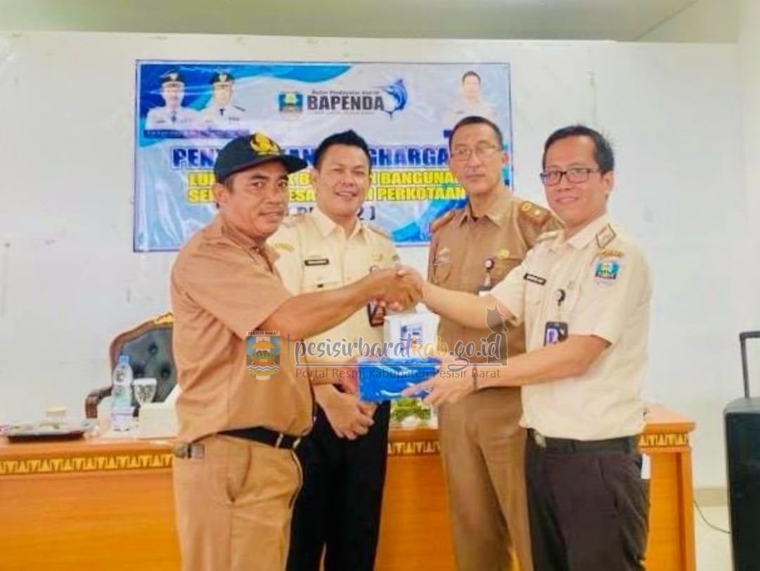 Pesisir Barat, HD- Pj. Sekda Kabupaten Pesisir Barat (Pesibar) Drs. Jon Edwar, M.Pd. menyerahkan secara simbolis Penyerahan Hadiah dan Penghargaan Lunas Pajak Bumi dan Bangunan (PBB) Sektor Pedesaan dan Perkotaan Tahun 2023 kepada Kecamatan dan Pekon/Kelurahan, di Ruang Rapat Sekda, Lantai 3 Gedung A, Komplek Perkantoran Pemkab Pesibar, Selasa (30/1/2024).