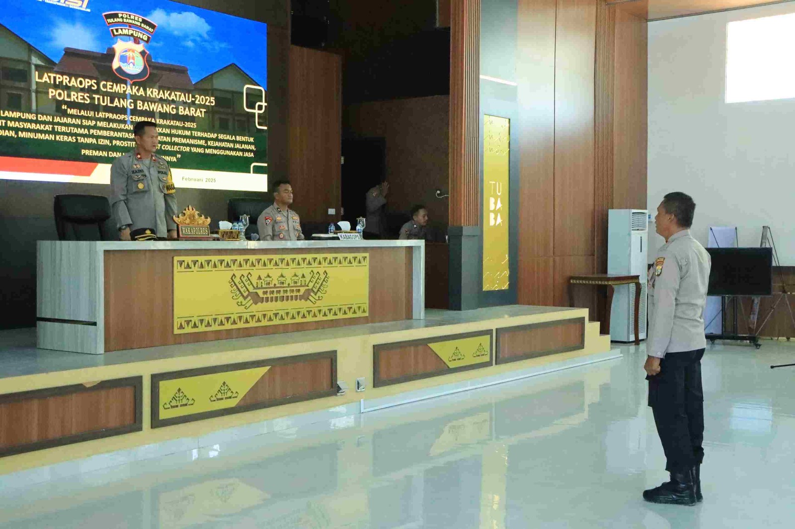 Tulang Bawang Barat, (HD) – Polres Tulang Bawang Barat Polda Lampung menggelar Latihan Pra Operasi (Lat Pra Ops) dengan sandi Operasi Cempaka Krakatau-2025 di aula Sarja Arya Racana Mapolres Tubaba, Jumat (28/02/2025) Pagi
