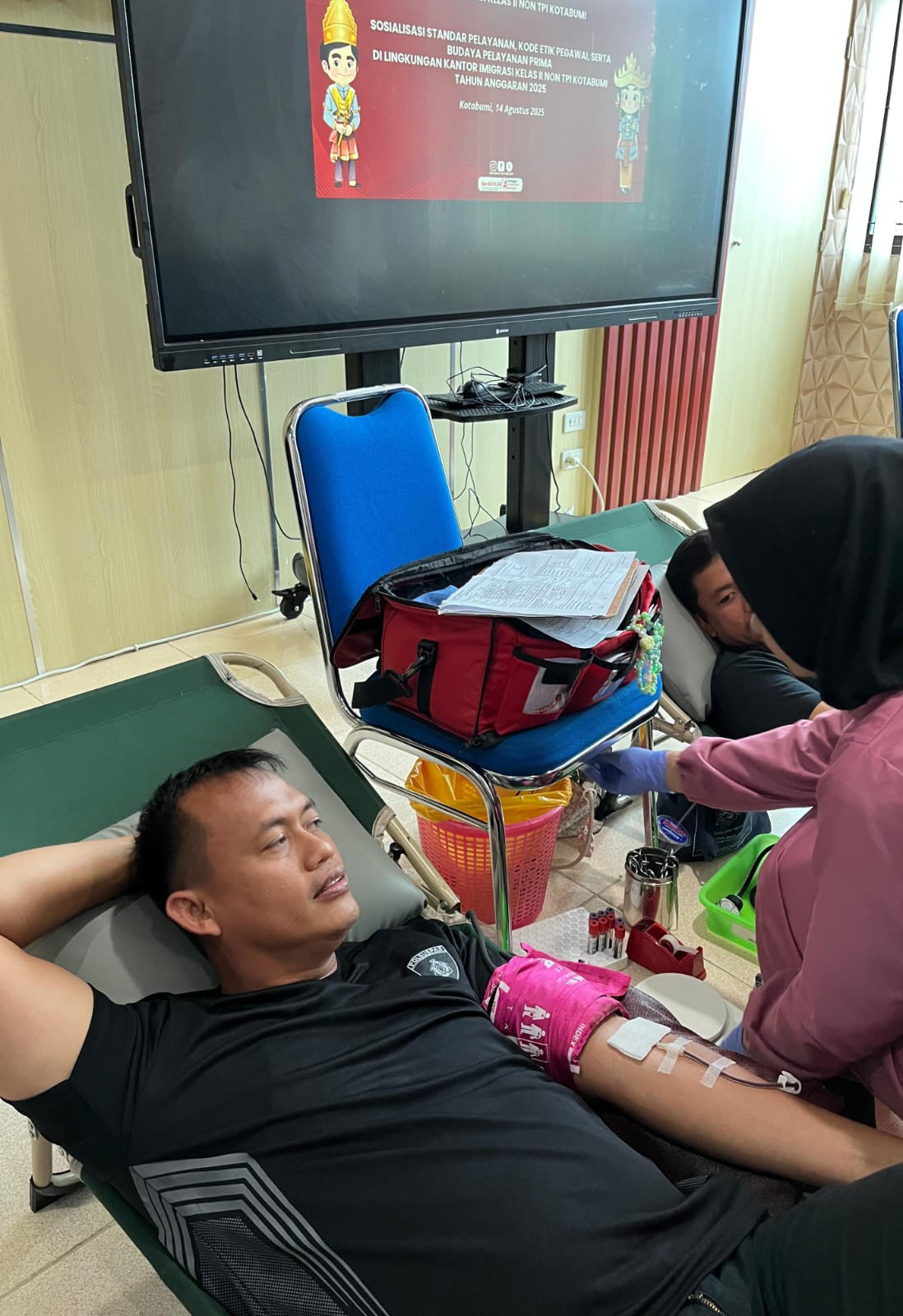 Kepala Lapas Kotabumi, yang dalam kesempatan ini diwakili oleh Kasubsi Registrasi, Hasanuddin, menyampaikan bahwa kegiatan donor darah tidak hanya menjadi rangkaian peringatan HUT ke-80 Kemerdekaan RI, namun juga wujud kepedulian sosial dari jajaran pemasyarakatan.