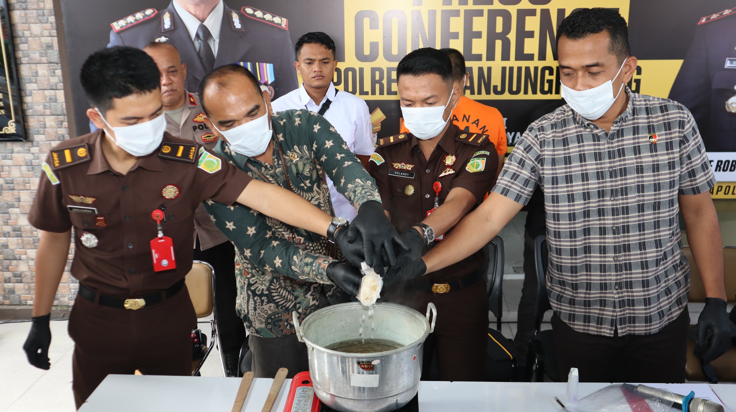 “Pemusnahan dilakukan dengan cara memasak atau merebus sabu menggunakan air mendidih di dalam wadah, kemudian diaduk-aduk hingga larut dan selanjutnya dibuang ke dalam septic tank,” imbuhnya.