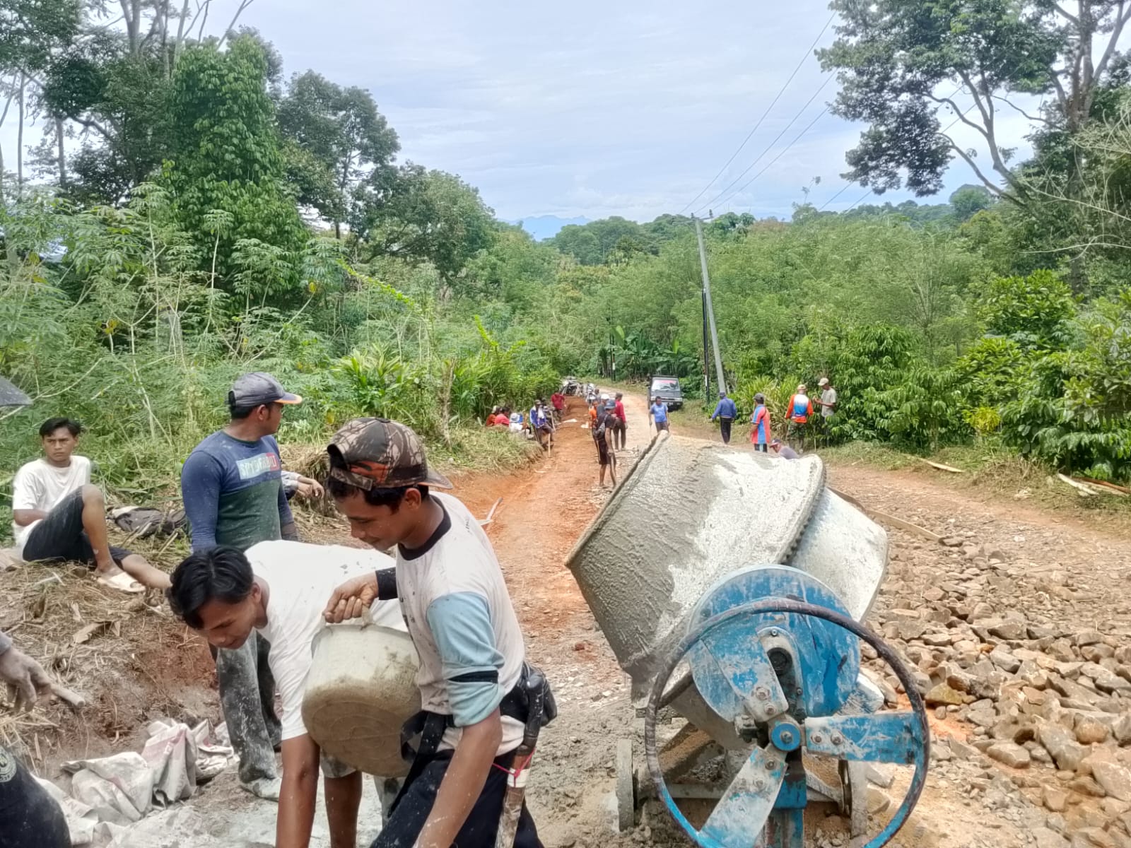 Dari pantauan media Nampak terlihat Semua warga bekerja bahu-membahu dalam berbagai tahapan, mulai dari membersihkan area, menyiapkan campuran semen, hingga meratakan dan menyelesaikan pengecoran.