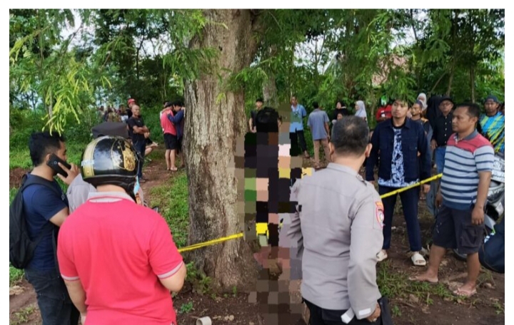 Saat lokasi ditelusuri, saksi melihat korban berdiri di samping pohon dari kejauhan. Namun, saat dipanggil, korban tidak merespons. Setelah didekati, korban ditemukan sudah dalam keadaan tidak bernyawa dengan leher terikat tali tambang yang diikatkan di pohon asam.
